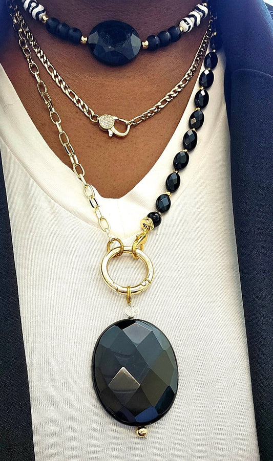 Bulls Eye Agate and Onyx Choker Necklace Set