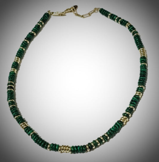 Malachite and Gold Stainless Steel Choker Necklace