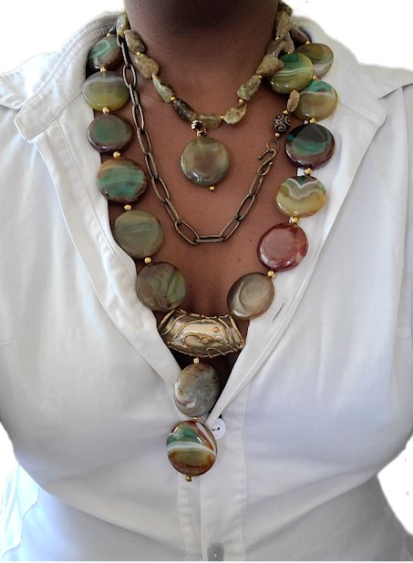 We just keep adding more gemstone chunky statement necklace ! Each designed by a vision of what would like nice with a certain attire. These bold natural gemstone pieces are eye catching ! Our Necklaces can be chunky statement, bohemian, bold, or simple collar necklace. But our chunky statement necklace really makes an outfit pops! ALL