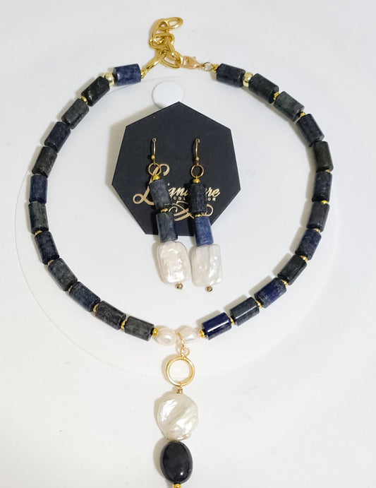 Lapis Lazuli and Freshwater Pearls Necklace set