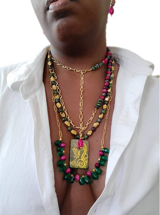 Pink Topaz and Ruby Zoisite Multi layer Necklace