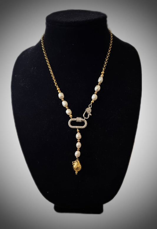 Gold Chain Link and Freshwater Pearl Y Necklace