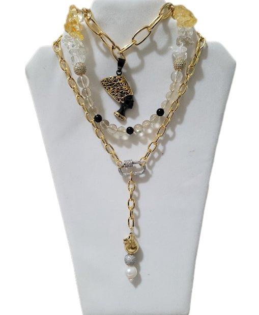 is a collection of handcrafted designs made with stainless steel, premium brass metal, or sterling silver. Our metals are nickel free and hypoallergenic. Each is a unique design which also includes freshwater pearls, cubic zirconia, and natural stones. Some chain link necklaces are simple for layer look or minimalist style. Our bracelets are even made with gemstones and chain links