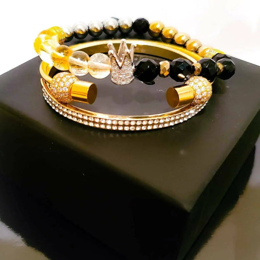 This is a collection of grade AAA semi precious gemstone jewelry with bold designs of necklaces, earrings, and bracelets. Our jewelry for men are genuine leather bracelets and beaded bracelet sets. Our women bracelets are 3pc sets with bangles and gemstone beads.