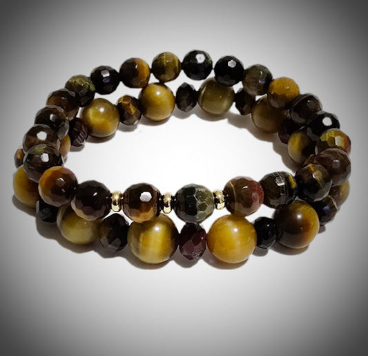 Men's 2pc. Faceted Round Tiger Eye Bracelet set