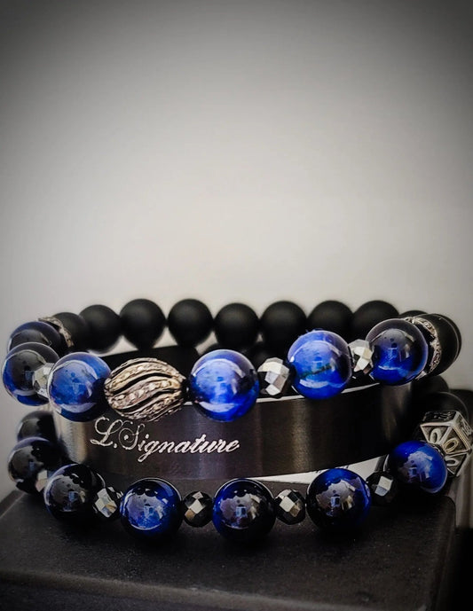 Men's Blue Tiger Eye and Black Diamonds bracelet set