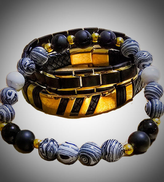 Men's White Malachite and Onyx 3pc. Bracelet set