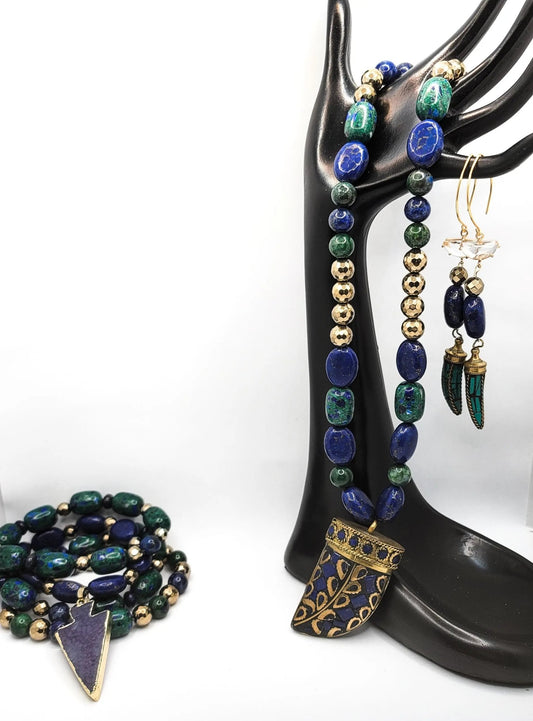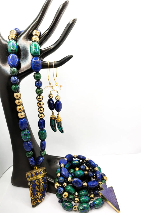 Chrysocolla and Lapis Lazuli Gemstone Jewelry Set