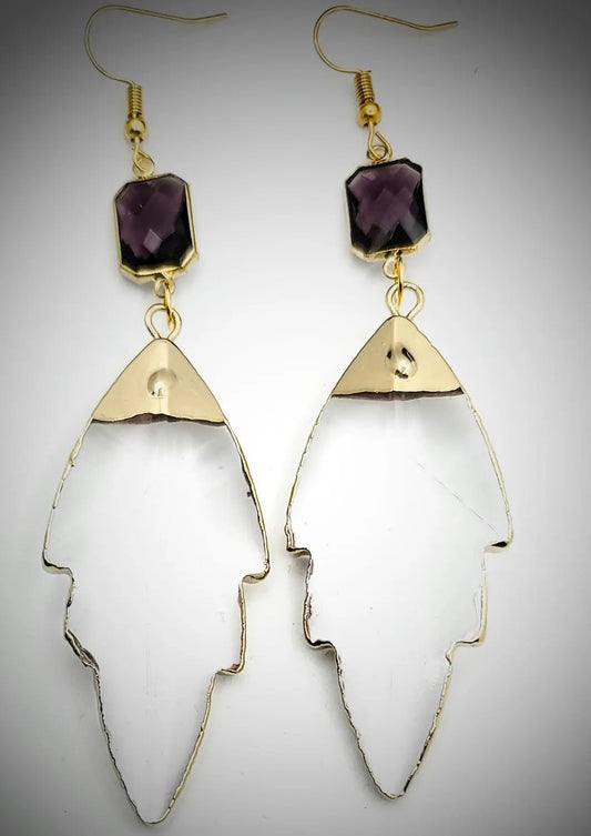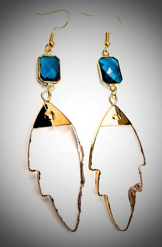 Clear Quartz Leaf Earrings "Druzy Blue"