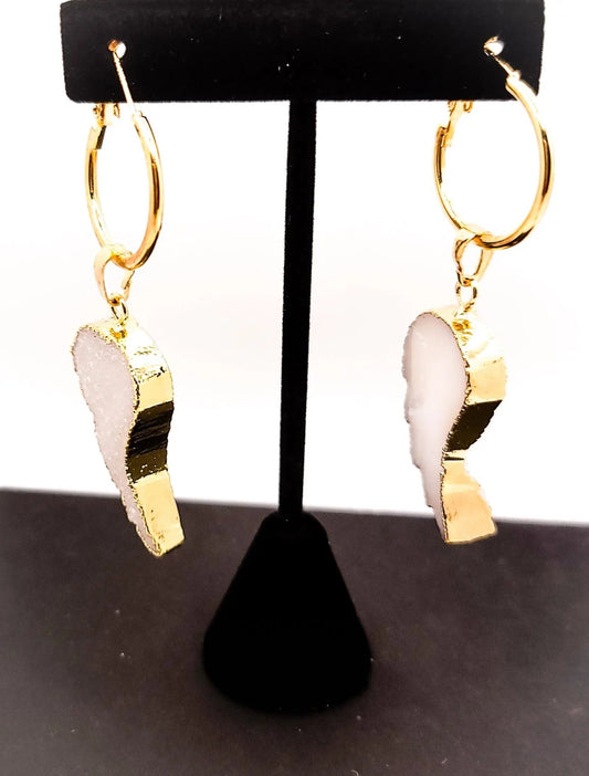 Turquoise Druzy Quartz Gold Hoop Earrings